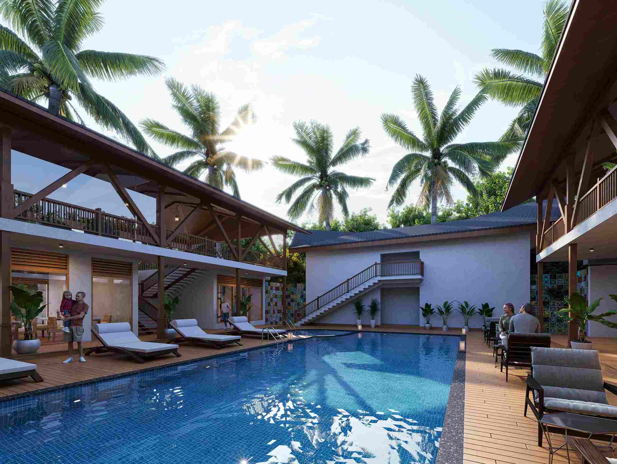 The clubhouse is designed with inspiration from Balinese architecture. As a part of the master site, it offers a recreational space, consisting of the kids' play area, gym, theatre with a capacity of 100 people, spa, and restaurants that encloses a relaxing pool.