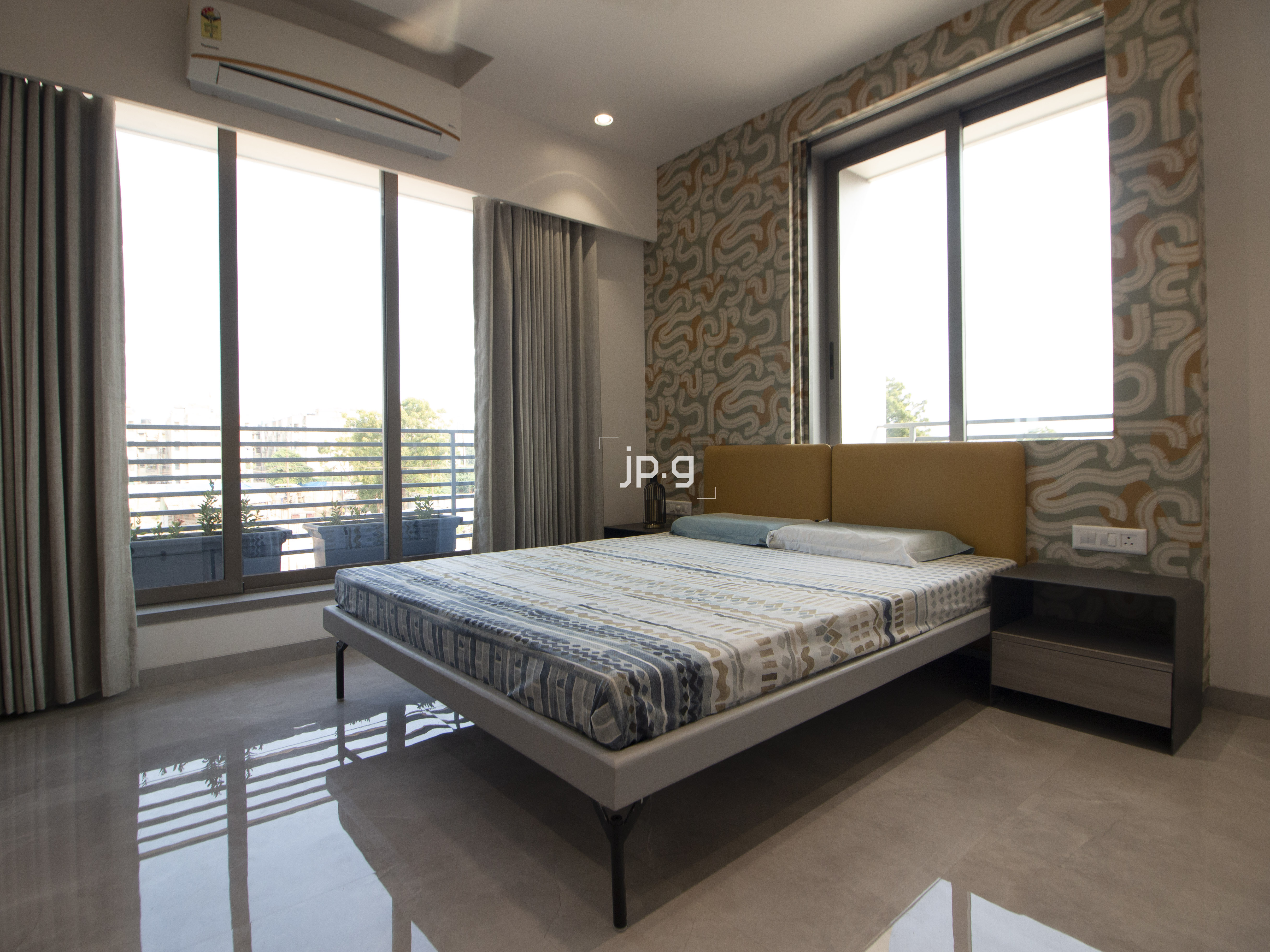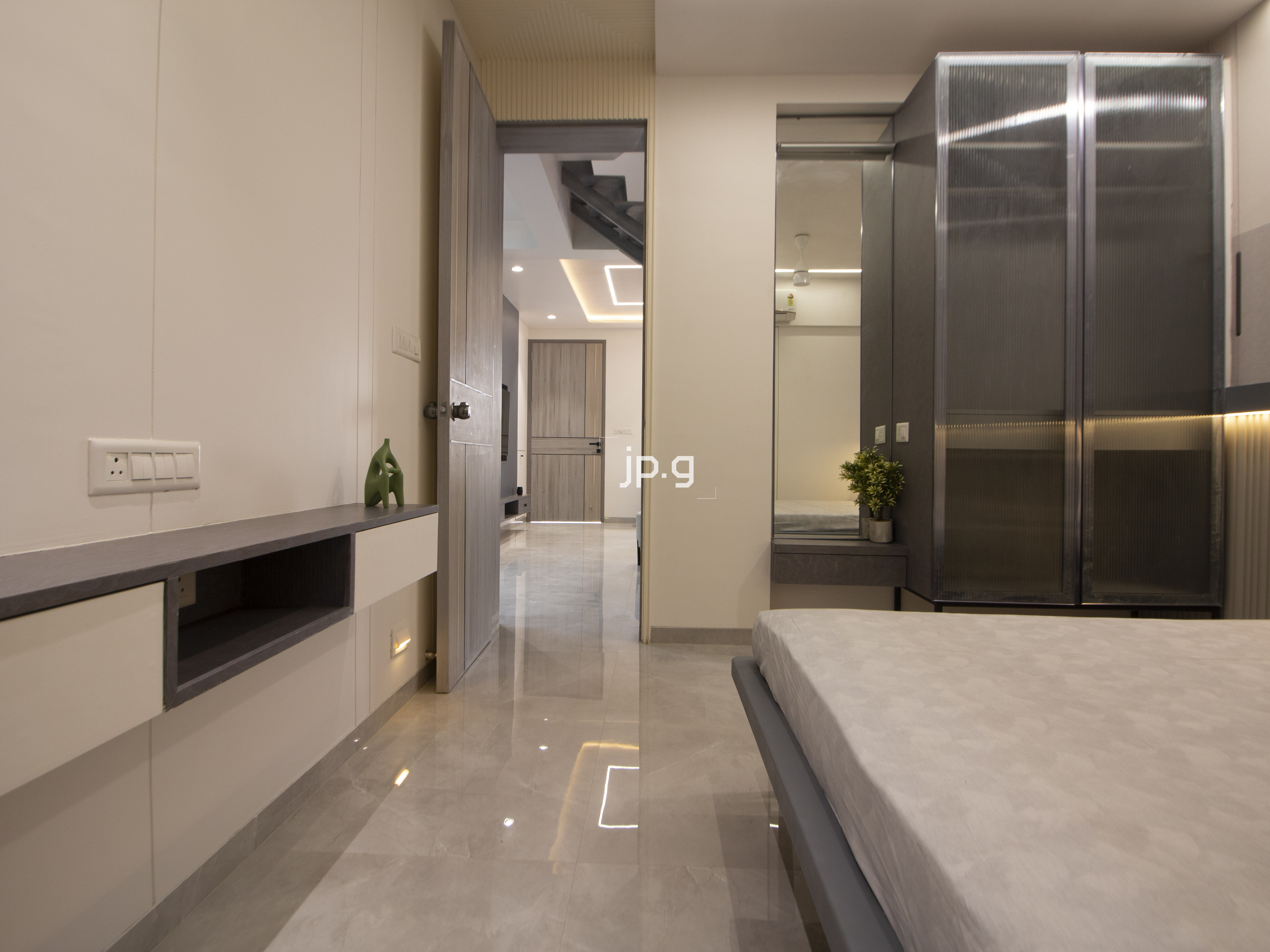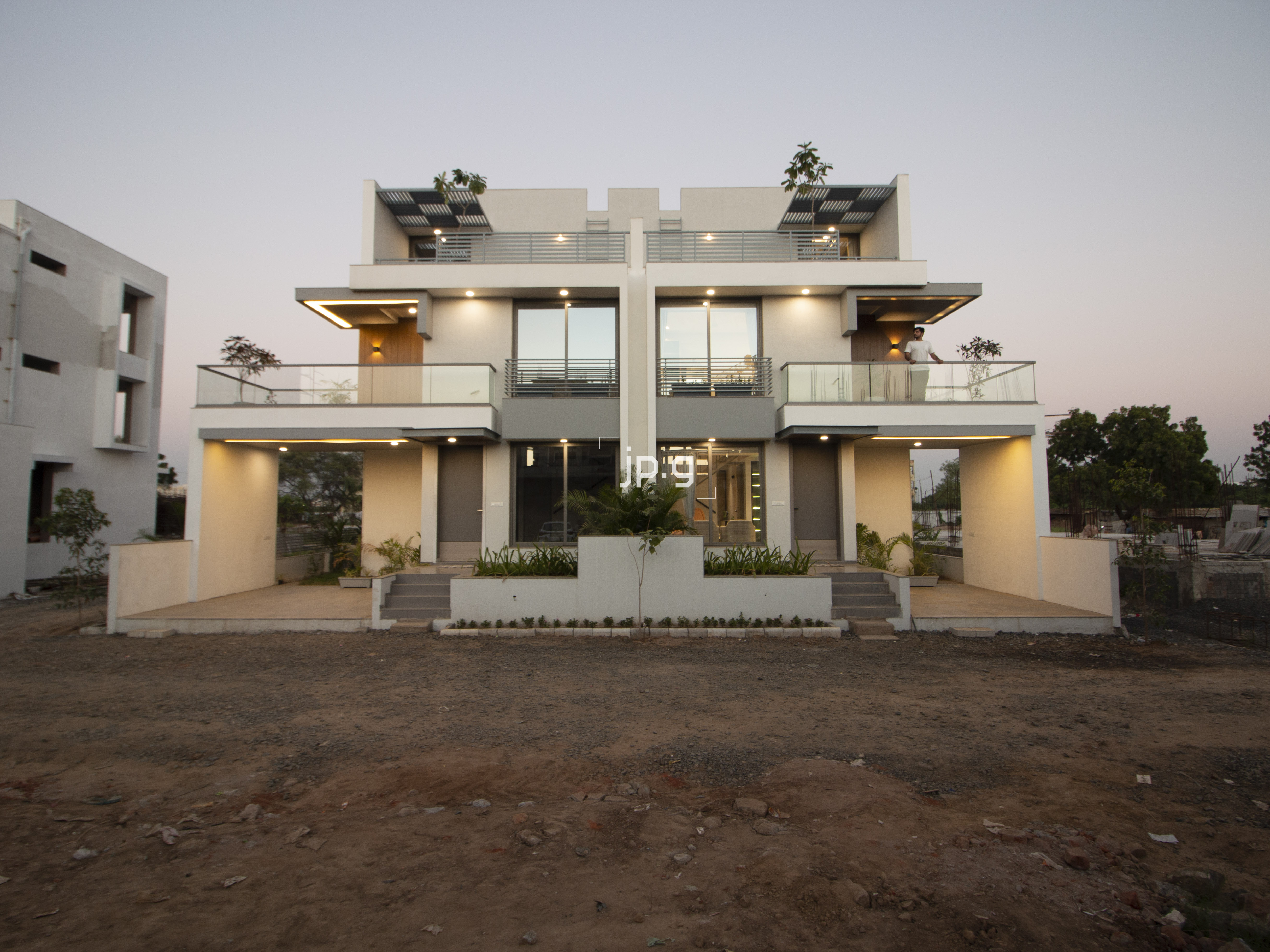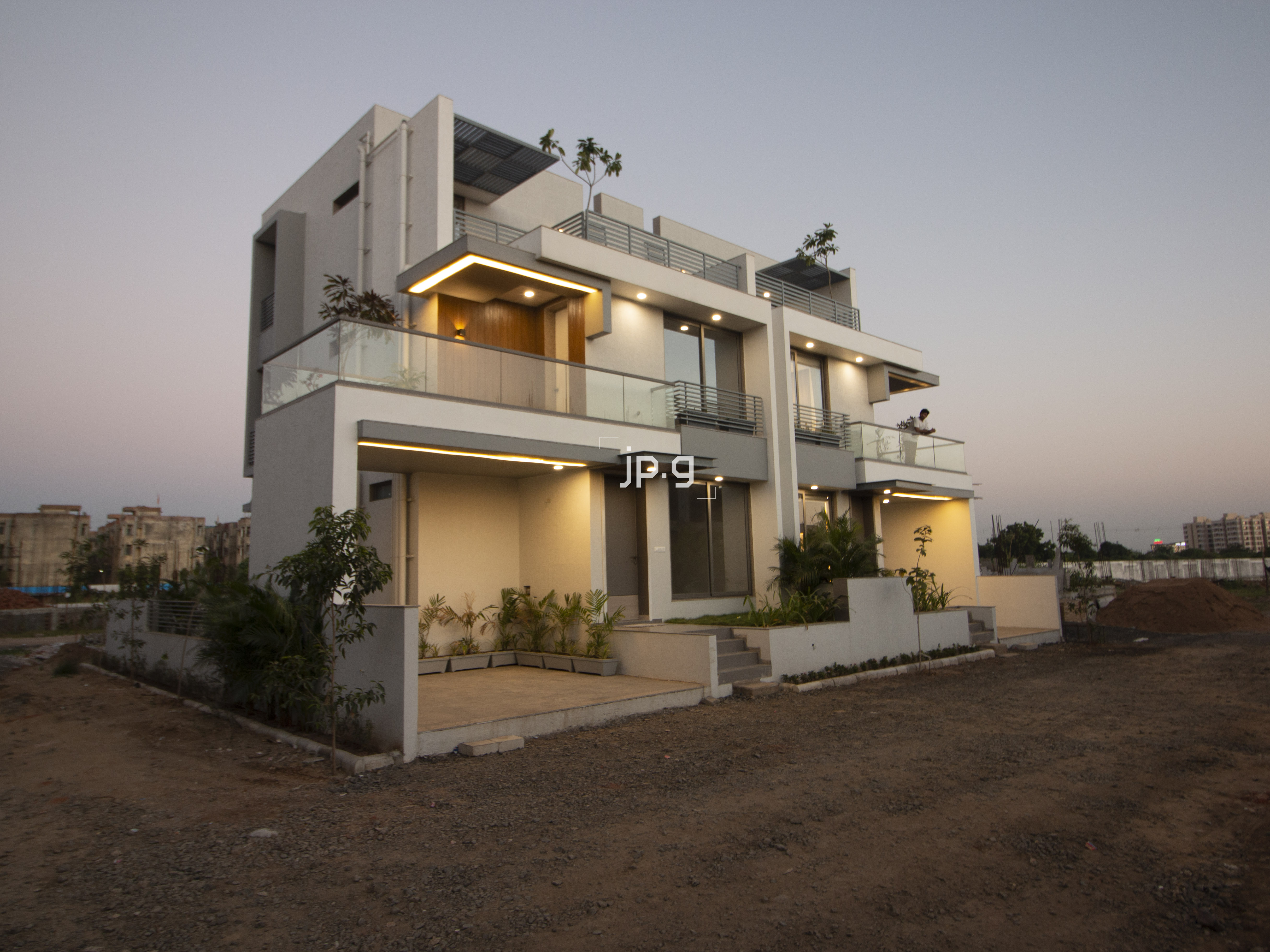 The site is located at South Bopal, Ahmedabad. A total of 37242 sq. ft. site area. It’s an affordable high rise having 94, 3 BHK flats and single story 14 shops on the ground floor having a total area of 9194 sq. ft. With no vehicle zone on the ground floor wherein, the hollow plinth is used for the amenities like gym, yoga center, multipurpose hall, indoor game house, tv room, etc., and the basement is used for parking. It also offers a spacious garden area for different activities. The site offers an astonishing living experience within the chaotic cityscape. It's a world within itself.